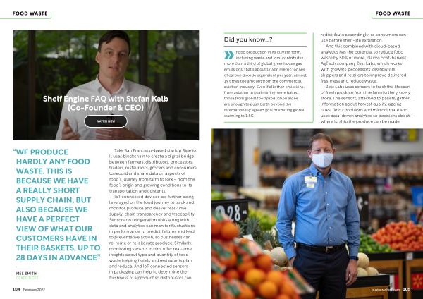 IoT connected devices are further being leveraged on the food journey to track and monitor produce and deliver real-time supply-chain transparency and traceability . Sensors on refrigeration units along with data and analytics can monitor fluctuations in performance to predict failures and lead to preventative action , so businesses can re-route or re-allocate produce . Similarly , monitoring sensors in bins offer real-time insights about type and quantity of food waste helping hotels and restaurants plan and reduce . And IoT connected sensors in packaging can help to determine the freshness of a product so distributors can