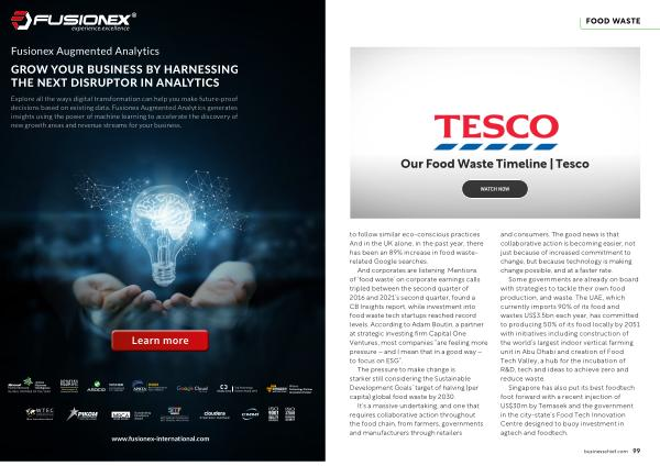 Some governments are already on board with strategies to tackle their own food production , and waste . The UAE , which currently imports 90 % of its food and wastes US $ 3.5bn each year , has committed to producing 50 % of its food locally by 2051 with initiatives including construction of the world ’ s largest indoor vertical farming unit in Abu Dhabi and creation of Food Tech Valley , a hub for the incubation of R & D , tech and ideas to achieve zero and reduce waste .