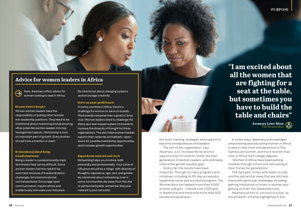 Awamary Lowe-Khan The Woman Boss the tools , training , strategies and support to become entrepreneurs and leaders .