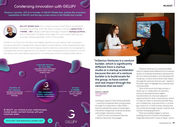 “ InGenius Ventures is a venture builder , which is significantly different from a startup studio or a startup accelerator , because the aim of a venture builder is to build assets for the group , to have control and a real impact through the ventures that we own ,” explains El Ansari , keen to highlight how startups and ventures differ .