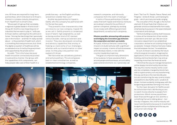 “ We are part of a group that is probably a regional or global leader in AI and cloud – Group 42 . And AI is now impacting a lot of industries that we want to play in ,” enthuses El Ansari , before outlining how this will look in future . “ Among the few things that I personally see on the horizon – and that I ' m really excited about – is the potential of health tech , which is something that everyone knows , but I think the digital ecosystem of healthcare will be accelerated once it ' s led by the government and supported by the private sector .”