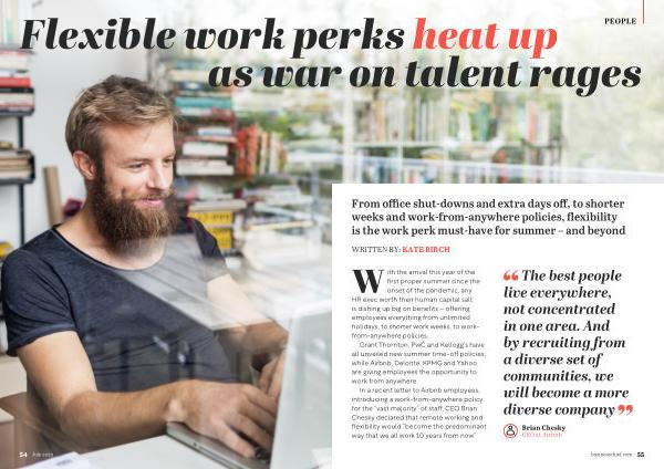 With the arrival this year of the first proper summer since the onset of the pandemic , any HR exec worth their human capital salt is dishing up big on benefits – offering employees everything from unlimited holidays , to shorter work weeks , to workfrom-anywhere policies .
