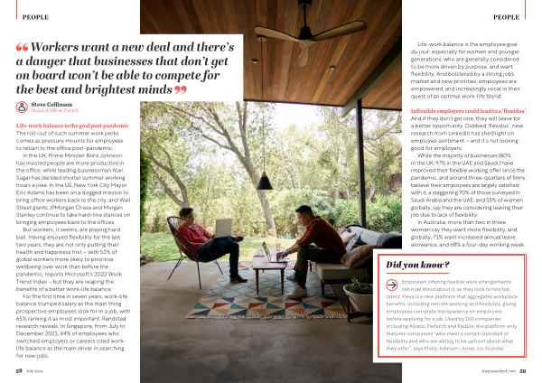 Employers offering flexible work arrangements can now shout about it , as they look to hire top talent . Flexa is a new platform that aggregates workplace benefits , including remote working and flexibility , giving employees complete transparency on employers before applying for a job . Used by 150 companies including Allianz , Farfetch and Paddle , the platform only features companies “ who meet a certain standard of flexibility and who are willing to be upfront about what they offer ”, says Molly Johnson-Jones , co-founder .