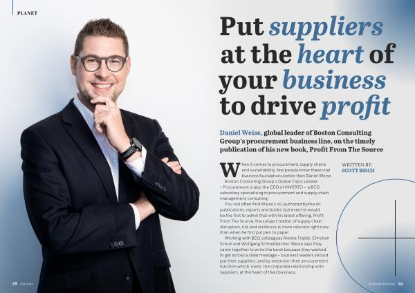 Daniel Weise , global leader of Boston Consulting Group ’ s procurement business line , on the timely publication of his new book , Profit From The Source