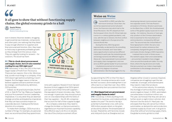 BC : How important are procurement and supply chains in 2022 ? DW : I would say : Is there anything more important for business , and indeed political , leaders this year ? The world is facing a potential humanitarian crisis , with some 400 million people reliant on the grain produced by Ukraine , the bread basket of Europe . Meanwhile , with factories closed , and vital ports ( such as Shanghai and Los