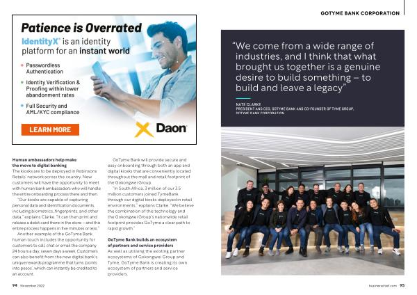 “ In South Africa , 3 million of our 3.5 million customers joined TymeBank through our digital kiosks deployed in retail environments ,” explains Clarke . “ We believe the combination of this technology and the Gokongwei Group ’ s nationwide retail footprint provides GoTyme a clear path to rapid growth .”