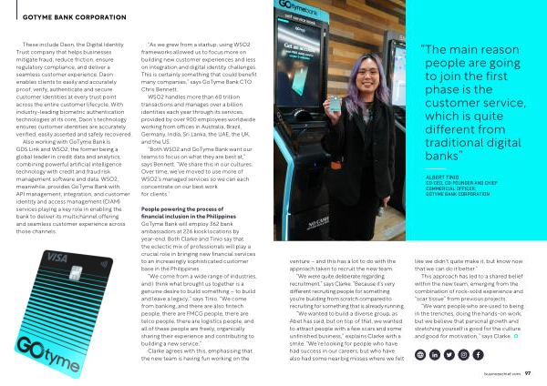 ALBERT TINIO CO-CEO , CO-FOUNDER AND CHIEF COMMERCIAL OFFICER , GOTYME BANK CORPORATION venture – and this has a lot to do with the approach taken to recruit the new team . “ We were quite deliberate regarding recruitment ,” says Clarke . “ Because it ' s very different recruiting people for something you ' re building from scratch compared to recruiting for something that is already running . “ We wanted to build a diverse group , as Abet has said , but on top of that , we wanted to attract people with a few scars and some unfinished business ,” explains Clarke with a smile . “ We ’ re looking for people who have had success in our careers , but who have also had some near big misses where we felt like we didn ' t quite make it , but know now that we can do it better .”