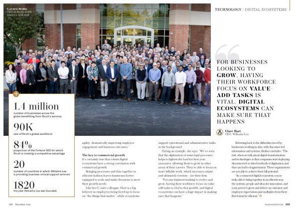 “ In a connected digital ecosystem , you ’ re truly able to bring together in an efficient way the systems , people and ideas for innovation , and your power to grow and deliver on customer and employee expectations just multiplies from there . But it must be efficient .” businesschief . com 111