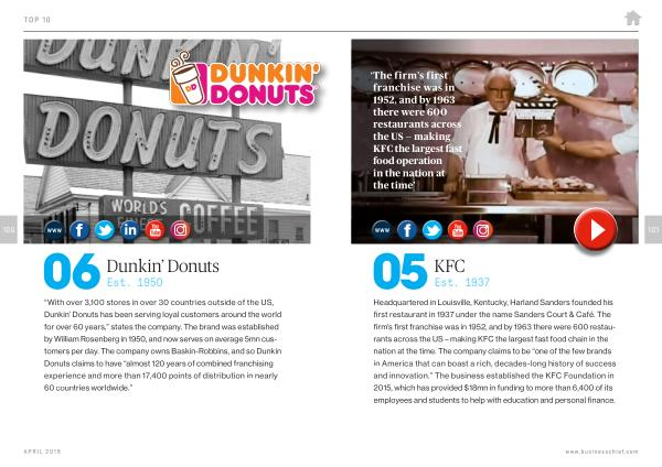 Headquartered in Louisville , Kentucky , Harland Sanders founded his first restaurant in 1937 under the name Sanders Court & Café . The firm ’ s first franchise was in 1952 , and by 1963 there were 600 restaurants across the US – making KFC the largest fast food chain in the nation at the time . The company claims to be “ one of the few brands in America that can boast a rich , decades-long history of success and innovation .” The business established the KFC Foundation in 2015 , which has provided $ 18mn in funding to more than 6,400 of its employees and students to help with education and personal finance .