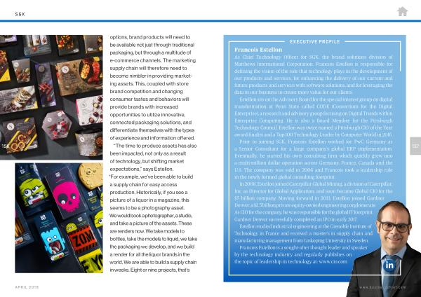 “ The time to produce assets has also been impacted , not only as a result of technology , but shifting market expectations ,” says Estellon . “ For example , we ’ ve been able to build a supply chain for easy access production . Historically , if you see a picture of a liquor in a magazine , this seems to be a photography asset . We would book a photographer , a studio , and take a picture of the assets . These are renders now . We take models to bottles , take the models to liquid , we take the packaging we develop , and we build a render for all the liquor brands in the world . We are able to build a supply chain in weeks . Eight or nine projects , that ’ s