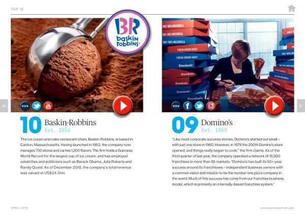 The ice cream and cake restaurant chain , Baskin-Robbins , is based in Canton , Massachusetts . Having launched in 1953 , the company now manages 700 stores and carries 1,200 flavors . The firm holds a Guinness World Record for the largest cup of ice cream , and has employed celebrities and politicians such as Barack Obama , Julia Roberts and Randy Quaid . As of December 2018 , the company ’ s total revenue was valued at US $ 24.3mn .