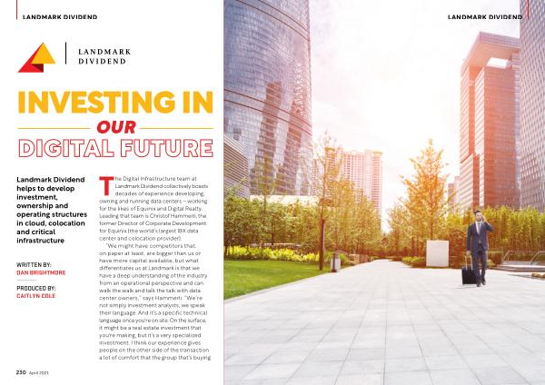 Landmark Dividend helps to develop investment , ownership and operating structures in cloud , colocation and critical infrastructure