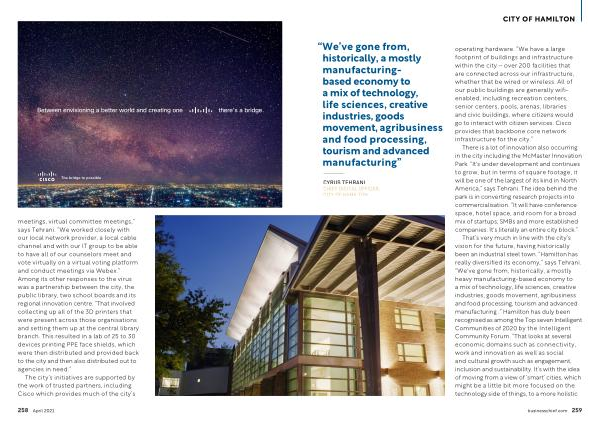 meetings , virtual committee meetings ,” says Tehrani . “ We worked closely with our local network provider , a local cable channel and with our IT group to be able to have all of our counselors meet and vote virtually on a virtual voting platform and conduct meetings via Webex .” Among its other responses to the virus was a partnership between the city , the public library , two school boards and its regional innovation centre . “ That involved collecting up all of the 3D printers that were present across those organisations and setting them up at the central library branch . This resulted in a lab of 25 to 30 devices printing PPE face shields , which were then distributed and provided back to the city and then also distributed out to agencies in need .”