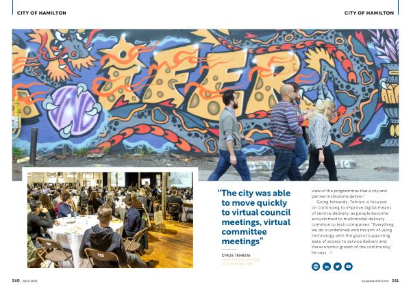CYRUS TEHRANI CHIEF DIGITAL OFFICER , CITY OF HAMILTON view of the programmes that a city and partner institutions deliver .”