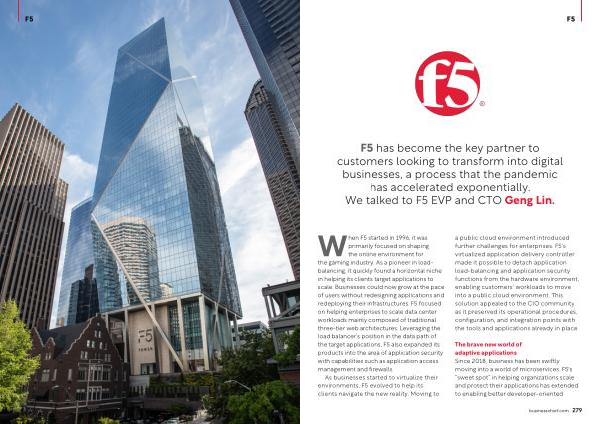 F5 has become the key partner to customers looking to transform into digital businesses , a process that the pandemic has accelerated exponentially . We talked to F5 EVP and CTO Geng Lin .