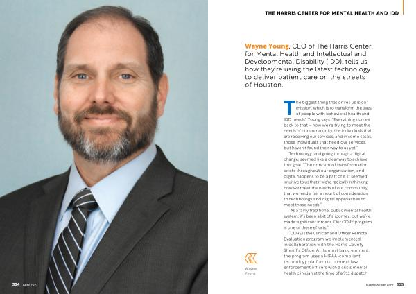 Wayne Young , CEO of The Harris Center for Mental Health and Intellectual and Developmental Disability ( IDD ), tells us how they ’ re using the latest technology to deliver patient care on the streets of Houston .