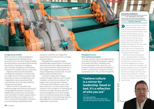 " When it comes to manufacturing , streamlined approval workflows and having a single digital thread that ' s accurate and reliable reduces lead times , can decrease costs and results in a better quality product ," says Moroski . Why is this single source of truth so critical ? Moroski explains , " Because as you ' re building or preparing to build