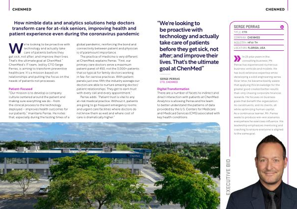 We ' re looking to be proactive with technology and actually take care of patients before they get sick , not after ; and improve their lives . That ' s the ultimate goal at ChenMed .” ChenMed ’ s IT team , led by CTO Serge Perras , is aiming to transform preventive healthcare . It ’ s a mission based on relationships and putting the focus on the needs of patients not processes .