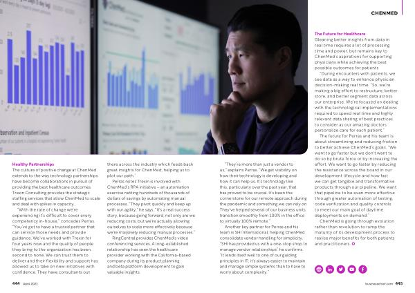 ChenMed is going through evolution rather than revolution to ramp the maturity of its development process to realise major benefits for both patients and practitioners . businesschief . com 445
