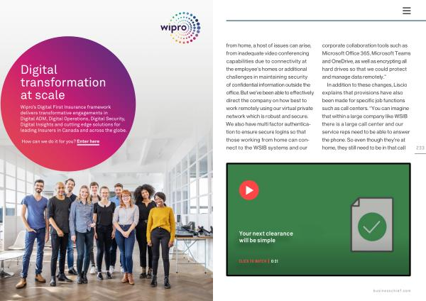 from home , a host of issues can arise , from inadequate video conferencing capabilities due to connectivity at the employee ’ s homes or additional challenges in maintaining security of confidential information outside the office . But we ’ ve been able to effectively direct the company on how best to work remotely using our virtual private network which is robust and secure . We also have multi factor authentication to ensure secure logins so that those working from home can connect to the WSIB systems and our corporate collaboration tools such as Microsoft Office 365 , Microsoft Teams and OneDrive , as well as encrypting all hard drives so that we could protect and manage data remotely .”