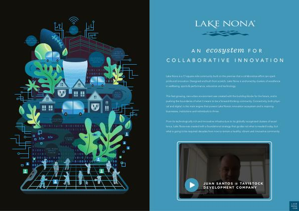 Lake Nona is a 17-square-mile community built on the premise that a collaborative effort can spark profound innovation . Designed and built from scratch , Lake Nona is anchored by clusters of excellence in wellbeing , sports & performance , education and technology .