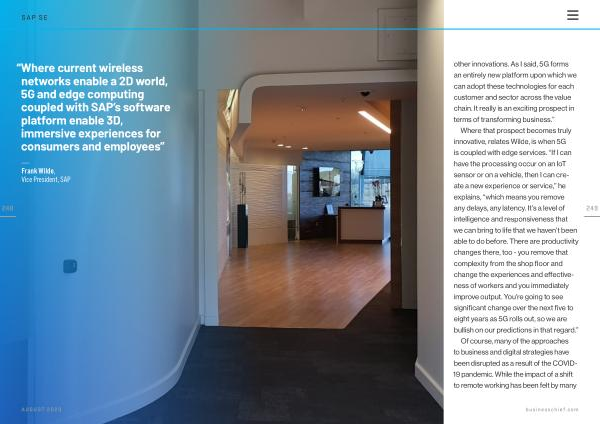 Where that prospect becomes truly innovative , relates Wilde , is when 5G is coupled with edge services . “ If I can have the processing occur on an IoT sensor or on a vehicle , then I can create a new experience or service ,” he explains , “ which means you remove any delays , any latency . It ’ s a level of intelligence and responsiveness that we can bring to life that we haven ’ t been able to do before . There are productivity changes there , too - you remove that complexity from the shop floor and change the experiences and effectiveness of workers and you immediately improve output . You ’ re going to see significant change over the next five to eight years as 5G rolls out , so we are bullish on our predictions in that regard .”