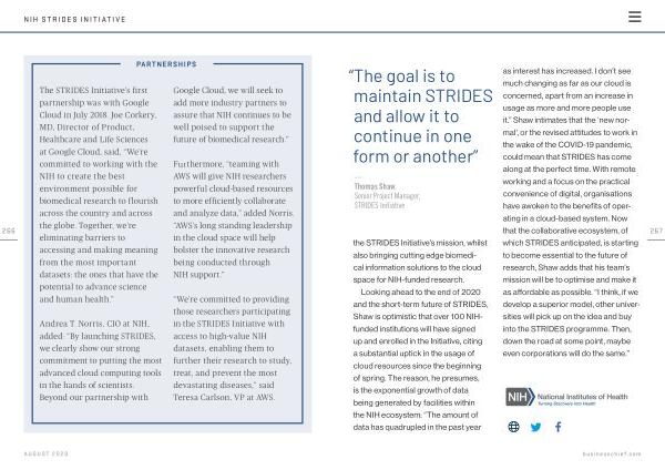 Andrea T . Norris , CIO at NIH , added : “ By launching STRIDES , we clearly show our strong commitment to putting the most advanced cloud computing tools in the hands of scientists . Beyond our partnership with