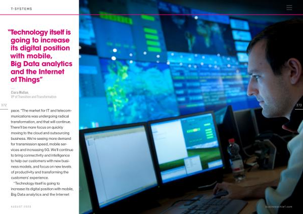 372 pace . “ The market for IT and telecommunications was undergoing radical transformation , and that will continue . There ’ ll be more focus on quickly moving to the cloud and outsourcing business . We ’ re seeing more demand for transmission speed , mobile services and increasing 5G . We ’ ll continue to bring connectivity and intelligence to help our customers with new business models , and focus on new levels of productivity and transforming the customers ’ experience .