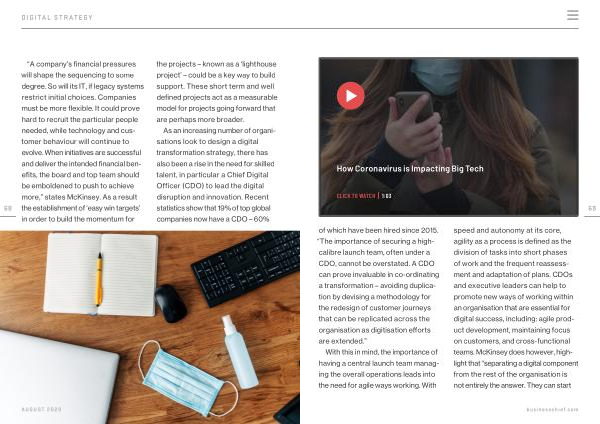 As an increasing number of organisations look to design a digital transformation strategy , there has also been a rise in the need for skilled talent , in particular a Chief Digital Officer ( CDO ) to lead the digital disruption and innovation . Recent statistics show that 19 % of top global companies now have a CDO – 60 %