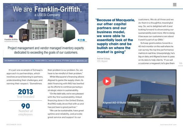While Macquarie ’ s financing allows Aligned to game the supply chain , its debt financing with ING has beefed up its efforts to continue pursuing a strategic vision in sustainability .
