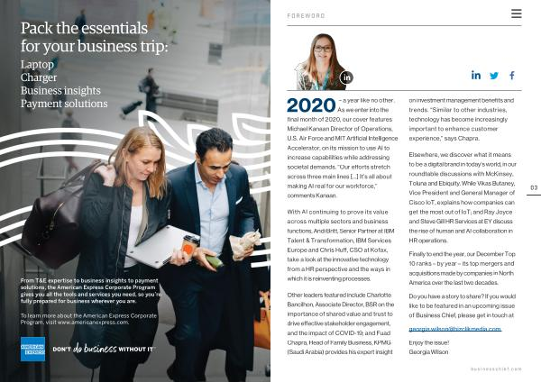 Do you have a story to share ? If you would like to be featured in an upcoming issue of Business Chief , please get in touch at