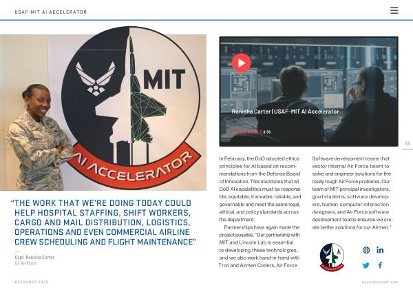 Software development teams that vector internal Air Force talent to solve and engineer solutions for the really tough Air Force problems . Our team of MIT principal investigators , grad students , software developers , human-computer interaction designers , and Air Force software development teams ensures we create better solutions for our Airmen .”