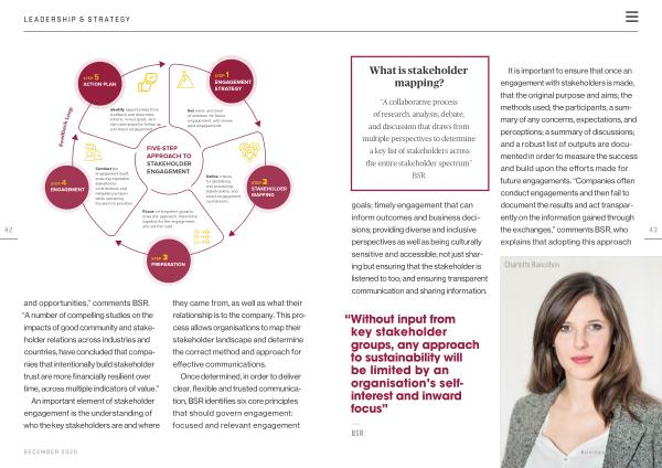 “ A collaborative process of research , analysis , debate , and discussion that draws from multiple perspectives to determine a key list of stakeholders across the entire stakeholder spectrum ” BSR