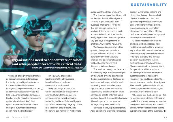 “ The greatest impact and trend will be the use of artificial intelligence . This is a logical next step from business intelligence – systems that can consume data from multiple data streams and provide actionable intel in a format that is easily digestible to the management . Say goodbye to huge teams of analysts : AI will be the new norm .