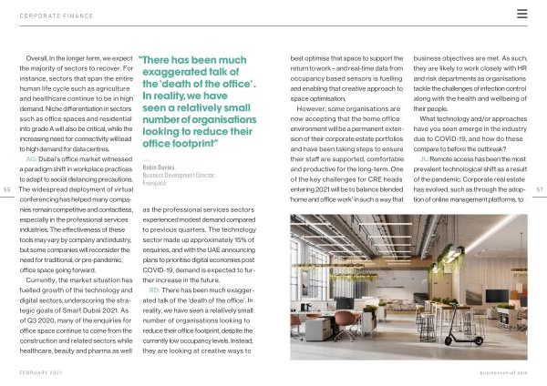 RD : There has been much exaggerated talk of the ‘ death of the office ’. In reality , we have seen a relatively small number of organisations looking to reduce their office footprint , despite the currently low occupancy levels . Instead , they are looking at creative ways to