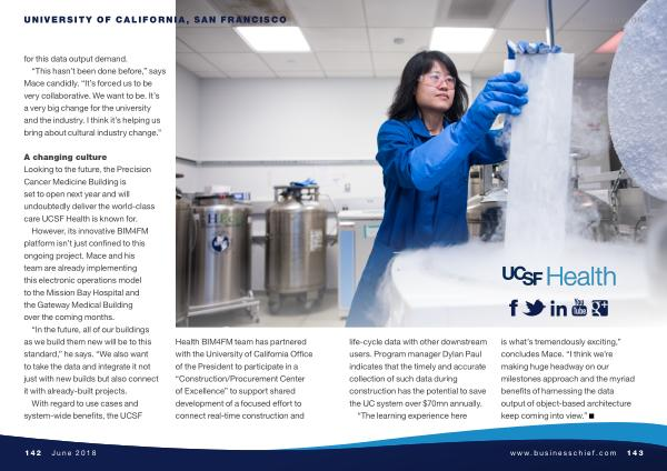 CONSTRUCTION life-cycle data with other downstream users . Program manager Dylan Paul indicates that the timely and accurate collection of such data during construction has the potential to save the UC system over $ 70mn annually . “ The learning experience here is what ’ s tremendously exciting ,” concludes Mace . “ I think we ’ re making huge headway on our milestones approach and the myriad benefits of harnessing the data output of object-based architecture keep coming into view .”