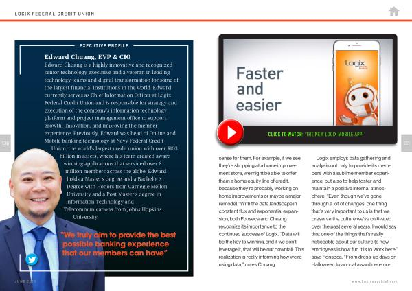 Edward Chuang is a highly innovative and recognized senior technology executive and a veteran in leading technology teams and digital transformation for some of the largest financial institutions in the world . Edward currently serves as Chief Information Officer at Logix Federal Credit Union and is responsible for strategy and execution of the company ’ s information technology platform and project management office to support growth , innovation , and improving the member experience . Previously , Edward was head of Online and Mobile banking technology at Navy Federal Credit