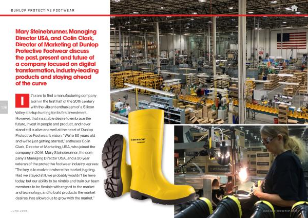 Mary Steinebrunner , Managing Director USA , and Colin Clark , Director of Marketing at Dunlop Protective Footwear discuss the past , present and future of a company focused on digital transformation , industry-leading products and staying ahead of the curve