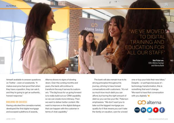 Alterna shows no signs of slowing down . Over the coming months and years , the bank will continue to transform the way it serves its customers . “ The big focus for us going forward is to really build out our CRM capability so we can create more intimacy . Then we want to deliver better content . We want to improve on the digital dialogue that can happen with the customer in terms of chat capability .”