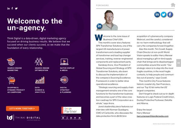FOREWORD W elcome to the June issue of Business Chief USA .