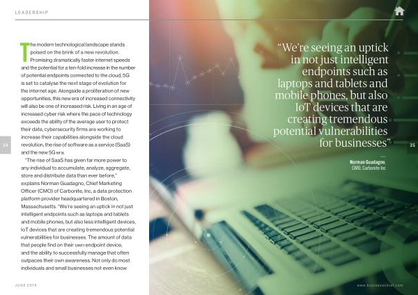 “ The rise of SaaS has given far more power to any individual to accumulate , analyze , aggregate , store and distribute data than ever before ,” explains Norman Guadagno , Chief Marketing Officer ( CMO ) of Carbonite , Inc , a data protection platform provider headquartered in Boston , Massachusetts . “ We ’ re seeing an uptick in not just intelligent endpoints such as laptops and tablets and mobile phones , but also less intelligent devices , IoT devices that are creating tremendous potential vulnerabilities for businesses . The amount of data that people find on their own endpoint device , and the ability to successfully manage that often outpaces their own awareness . Not only do most individuals and small businesses not even know