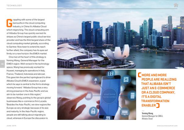 One man at the heart of this strategy is Yeming Wang , General Manager for the EMEA region . Well-versed in the technology space , Wang has previously worked for Huawei , managing its operations in Italy , France , Thailand , Indonesia and abroad . This gave him the perfect springboard to drive Alibaba Cloud ’ s EMEA expansion , a goal which he says is central to the firm ’ s strategy moving forward . “ Alibaba Group has a very strong presence in the Asia-Pacific and we aim to be number one in this region ,” observes Wang , pointing to the group ’ s global businesses like e-commerce firm Lazada . “ Besides the Asia-Pacific , we view regions like Europe as very strategic because of its size and maturity . In the Asia-Pacific region , people are still talking about migrating to cloud , whereas in Europe the discussion is