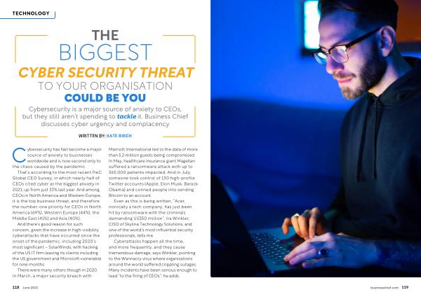 Cybersecurity is a major source of anxiety to CEOs , but they still aren ’ t spending to tackle it . Business Chief discusses cyber urgency and complacency