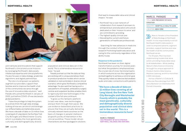 “ My role is to empower our patients , augment our providers , support their families and to improve the health of all of the communities we serve through the use of innovative data solutions ,” said Paradis who joined Northwell in January of 2020 , just before COVID-19 was declared a global pandemic .