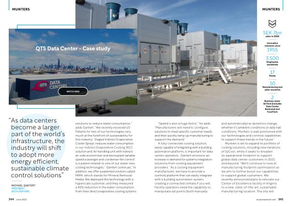 Munters is set to expand its portfolio of cooling solutions , including new iterations of SyCool , while it seeks to broaden its operational footprint to support global data center customers in 2021 and beyond . “ We ' ll continue to look at manufacturing footprint optimisation as we aim to further boost our capabilities to support global customers . We recently announced plans to relocate our Center of Excellence facility in Virginia to a new , state-of-the-art , sustainable manufacturing location . The site will
