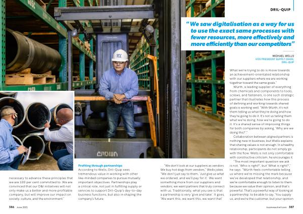 Profiting through partnerships According to Wells , Dril-Quip sees tremendous value in working with other like-minded companies to pursue mutually important objectives . Partnerships play a critical role , not just in fulfilling supply or services to support Dril-Quip ’ s day-to-day business functions , but also in shaping the company ’ s future .