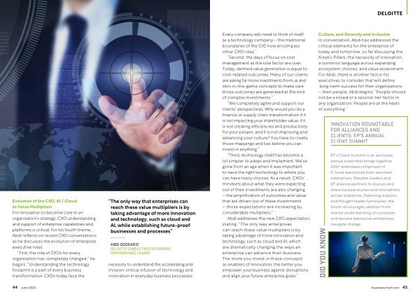 Evolution of the CXO , AI / Cloud as Value Multipliers For innovation to become core to an organisation ’ s strategy , CXO understanding and support of enterprise capabilities and platforms is critical . For his fourth theme , Abdi reflects on recent CXO conversations as he discusses the evolution of enterprise executive roles .