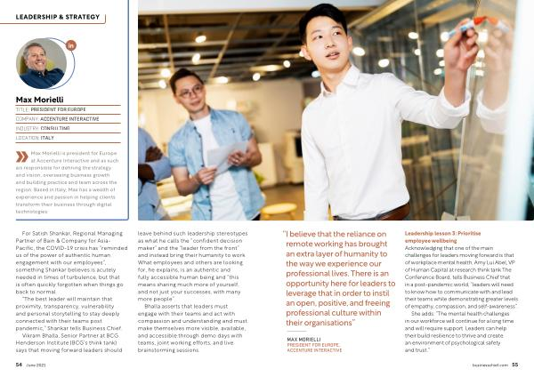 For Satish Shankar , Regional Managing Partner of Bain & Company for Asia- Pacific , the COVID-19 crisis has “ reminded us of the power of authentic human engagement with our employees ”, something Shankar believes is acutely needed in times of turbulence , but that is often quickly forgotten when things go back to normal .