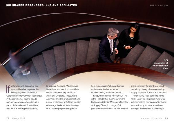 Its founder , Robert L . Waltrip , was the first person ever to consolidate funeral and cemetery locations under one umbrella . Today , Rone Luczynski and the procurement and supply chain team at SCI are working to leverage the latest in technology for a 10-year project designed to