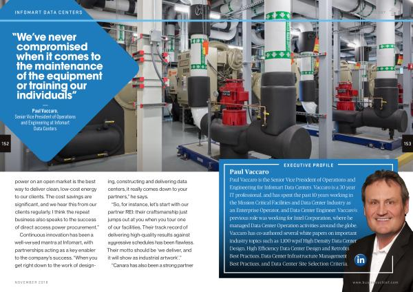 Paul Vaccaro is the Senior Vice President of Operations and Engineering for Infomart Data Centers . Vaccaro is a 30 year IT professional , and has spent the past 10 years working in the Mission Critical Facilities and Data Center Industry as an Enterprise Operator , and Data Center Engineer . Vaccaro ’ s previous role was working for Intel Corporation , where he managed Data Center Operation activities around the globe . Vaccaro has co-authored several white papers on important industry topics such as : 1,100 wpsf High Density Data Center Design , High Efficiency Data Center Design and Retrofits Best Practices , Data Center Infrastructure Management Best Practices , and Data Center Site Selection Criteria .